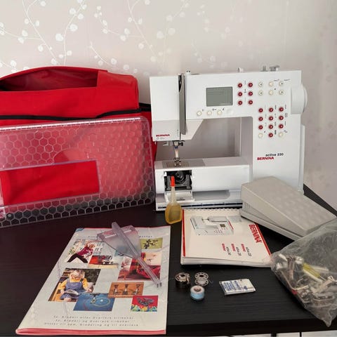 Bra symaskin. Väska och tillbehör. Bruksanvisn mm finns