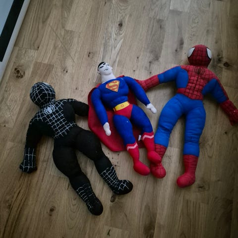 Marvel actionfigurer i set med karaktärerna Spider-Man, Captain America och Venom.
