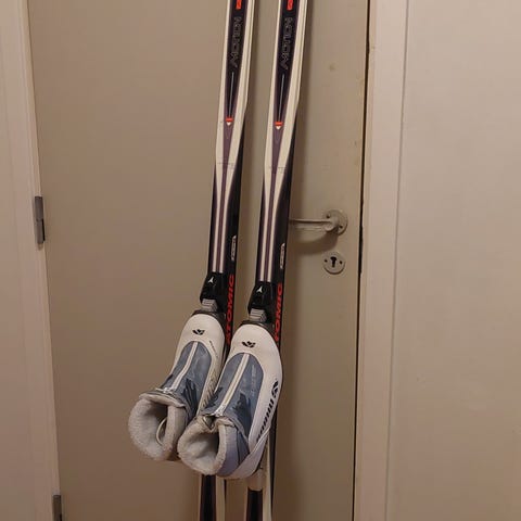 Snygga vallningsfria längdskidor från Atomic med Atomics egna SNS-bindningar. Funkar toppen, bra glid. Hämtas i Kärrtorp.