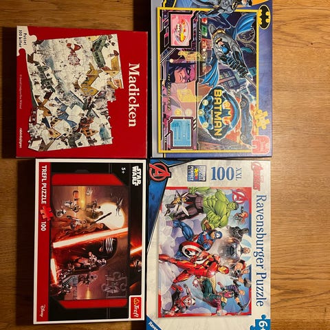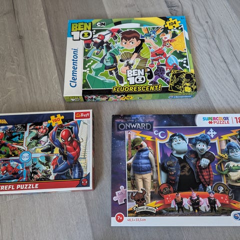 Alga Spel Pussel Alfabetet är ett roligt spel om bokstäver för 4+. Spelreglerna ingår. På en av bilderna syns spelbrickor uppradade de vänstra brickorna innehåller 26 brickor de som är i mitten innehåller 27 och de högra innehåller 29 alltså de som alla brickor egentligen ska innehålla, men det går ändå att spela. Man för även en tärning och spelplanerna och facit