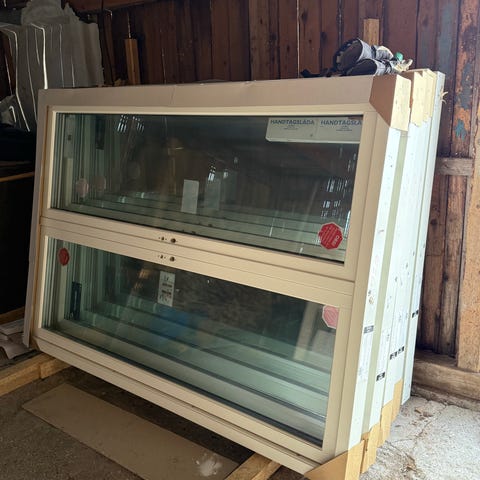 4 st vridfönster 9x120, 1 st fast 9x15, 1 st fast 19x15, 1 st fast 19x12. Terassdörr 9x19 vänsterhängd,