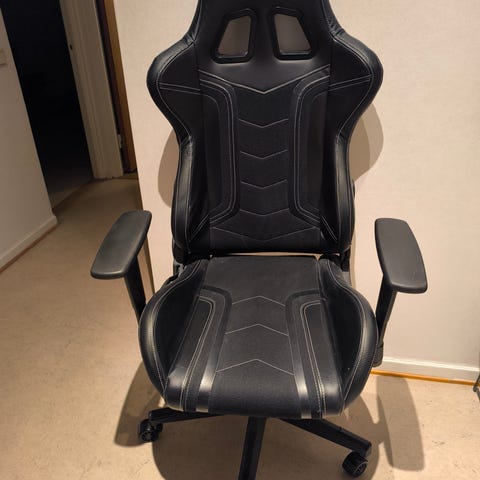 LEET gamingstol. Mindre slitage på sitsen, men resten är perfekt. 130 cm höjd, 66 cm bredd, 60 cm djup. Justerbar sitshöjd.