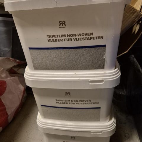 Vi har renoverat huset och fått en oöppnad 15 l förpackning med lim över.