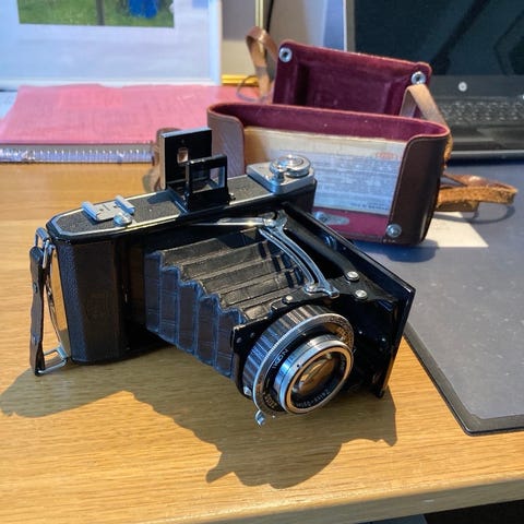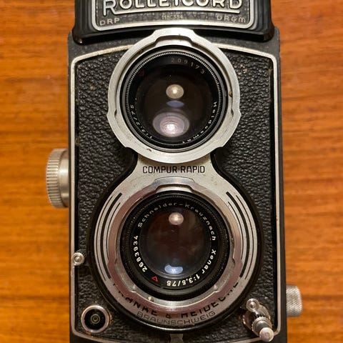 Säljer en Zeiss Ikoflex IIa mellanformat kamera med ett bra Tessar objektiv, som man också kan hitta på många Rolleicord eller Rolleiflex modeller. Kameran är i bra fungerande sick. Vid testmomentet fungerade alla tider tom 1/25s, inte de långa tiderna, som man ändå inte använder. Kameran har rena glas men fokuserar lite trögare. En fin väska och ett linsskydd ingår. 300 kr eller högsta bud. Kameran hämtas i Vasastan.