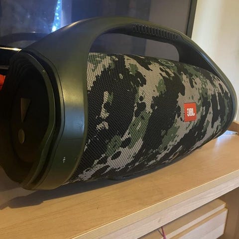 JBL Boombox 2 bärbar högtalare med bärhandtag och svart färg. Tyvärr har jag inte kartongen kvar. Använd främst utomhus, finns mindre repor på högtalaren men ingenting som påverkar ljudet eller funktion. Finns i Stockholm!