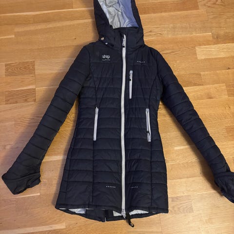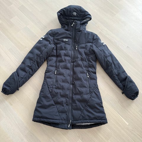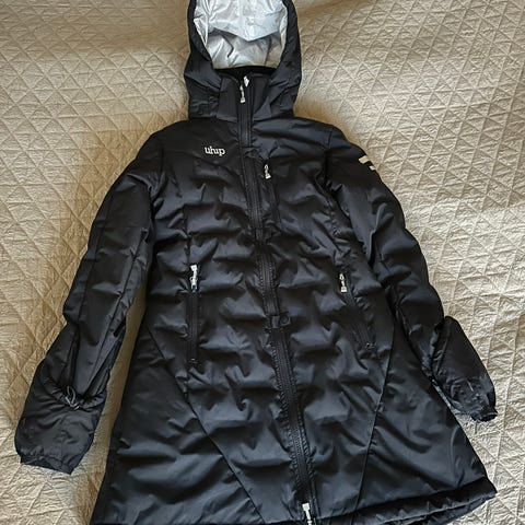 Uhip 365+ Coat damjacka i storlek 40 med svart utsida och gul insida.