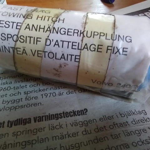 Okänd dragkrok kula av metall, använd för att koppla släp eller annan utrustning till fordon.