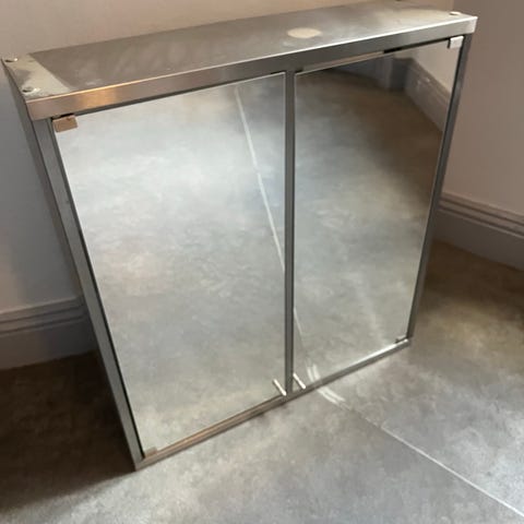 Svedbergs badrumsskåp med spegel i funkisstil. 61x46 cm. Hämtas på Johanneslust