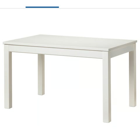 Säljer ett vitt utdragbart matbord med rundade kanter och kromade ben. Bordet är i använt skick med normala bruksspår, men stabilt och fullt fungerande.