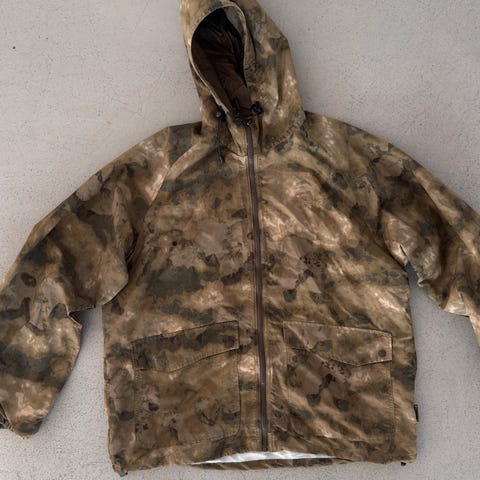 Swedteam kamouflagehuva med blad och mönster för kamouflering. Designad för att täcka huvudet och ansiktet med justerbart snöre runt hals/huvud. Materialet är lätt och anpassat för utomhusbruk vid jakt eller liknande aktiviteter. Camobladen är fastsydda på ett luftigt nät. Använd vid ett par (2-3) tillfällen) . Varsamt hand tvättad 1 gång inför denna försäljning. Kan skickas,