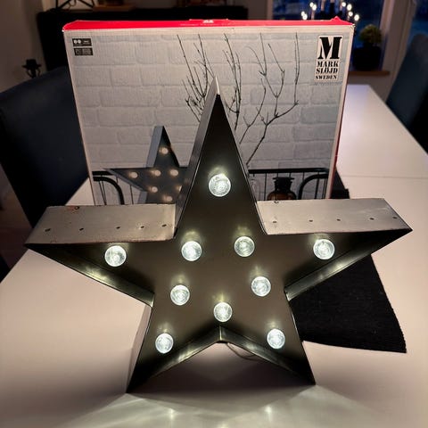 Stjärna i metall. Stomme för dekoration eller använd som inredning.