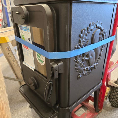 Norrahammar gjutjärnspanna vedspis med flera kokplattor och dekorativt mönster på fronten. Tillverkad i gjutjärn med detaljerad relief och emblem. Passar för vedeldning och matlagning med traditionell design.bredd 82 djup 61,5 höjd 38cm.ring noll sju två -448 86 93 för mer information.