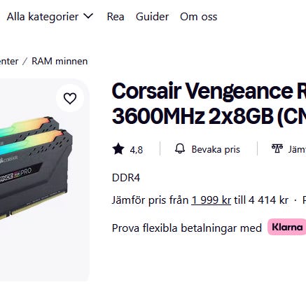 Corsair Vengeance RGB DDR5 RAM-minne med en kapacitet på 32GB och en hastighet på 7200MHz (CL34). Produkten är designad för att ge bland de högsta möjliga prestanda och har RGB-belysning.