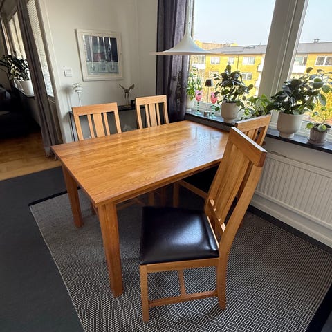 Bord och fyra stolar i massiv ek