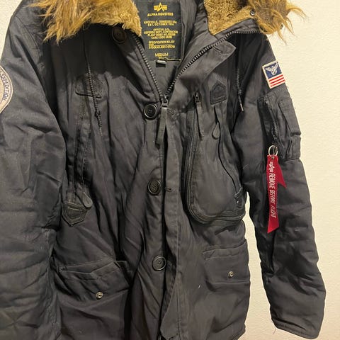 Säljer en röd jacka från 8848 Altitude med dragkedja och knappar framtill. Jackan har flera fickor fram och en på ärmen med dragkedja. Luvan har en avtagbar fuskpäls. Det finns även två fickor på insidan av jackan. Den passar utmärkt till vintern och är i perfekt skick trots att jag haft den i flera år. Kontakta mig gärna om du har frågor eller vill ha fler bilder, priset går att diskutera.