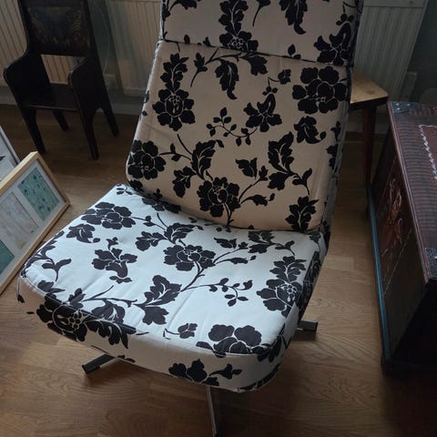Svart snurrfåtölj med pall