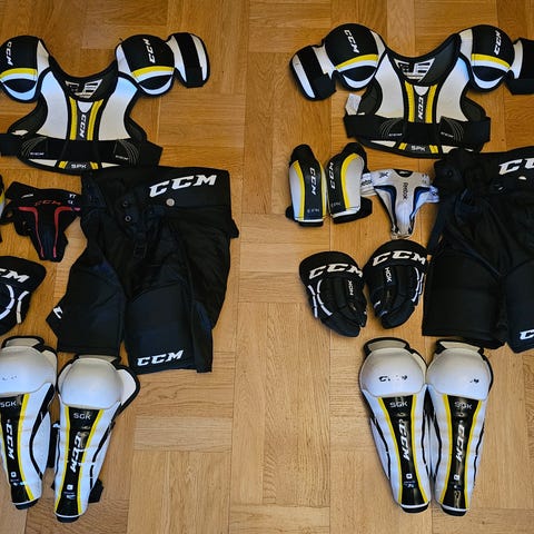 Hockeyutrustning som använts av kille som är ca 155-160 cm lång.