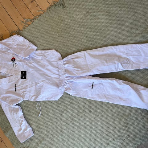 Tatami M4 Kampsportdräkt (motsvarar ca storlek 158), färg vit. Dräkten är avsedd för kampsport och består av jacka och byxor i vitt material. Medföljer ett vitt bälte.