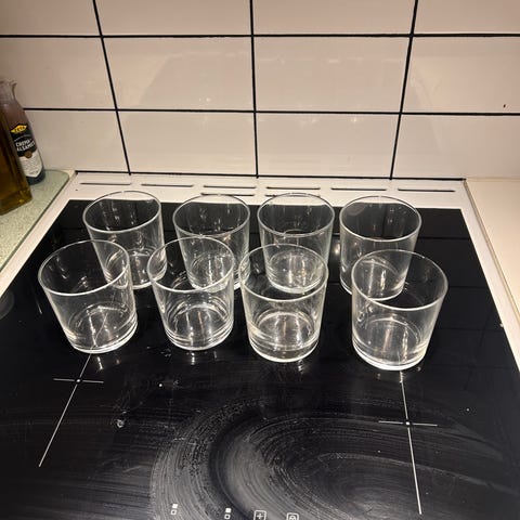 8 st glas på fot, en fotboll längst ned innan foten, ( tror den är av kristall ) väldigt sparsamt använda.