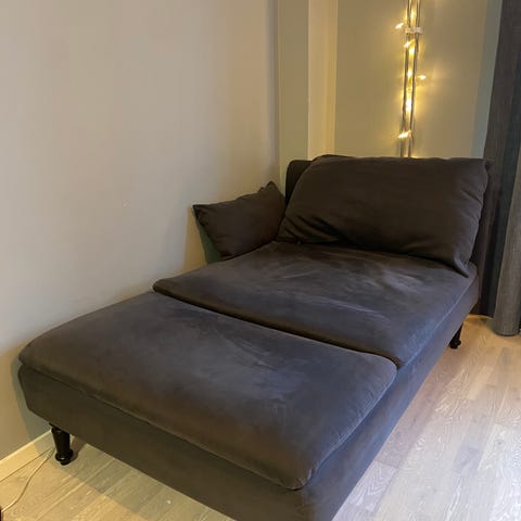 Säljer en fåtölj / soffdel från IKEA i färgen mörkgrå.