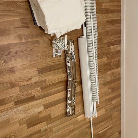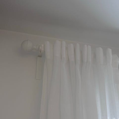 IKEA gardinstång med IKEA vita gardiner