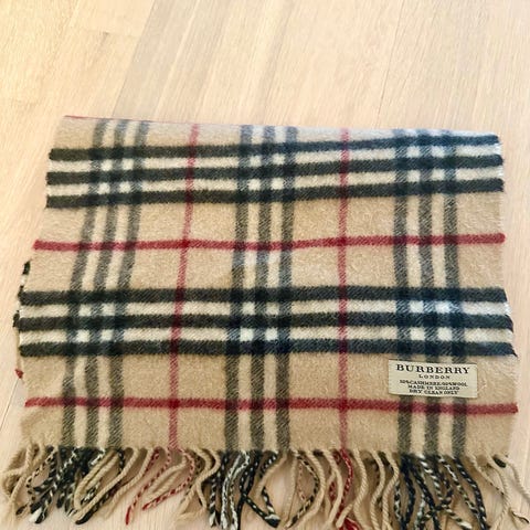 Vintage Burberry halsduk i beige färg tillverkad av 100% ull. Fint skick. Halsduken är äkta.