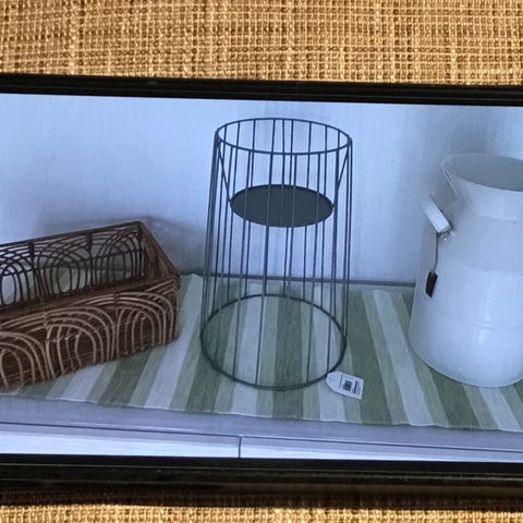 Nätt liten piedestal i rotting och ask (?). 50cm hög 23cm i diameter.