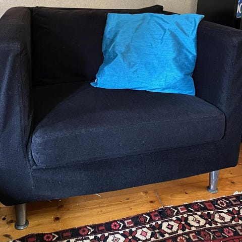 Vi har köpt överdrag-den svarta sammets liknande klädsel som är på bilden som medföljer om du vill ha den.