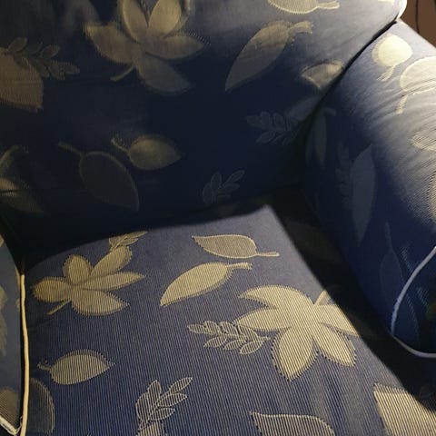 Våra papegojor har bitit i konstläder på flera ställen som fåtöljens ursprungliga materialet var.