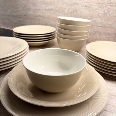 Unik partyset från Villeroy Boch. Perfekt för mingel och stående servering då vinglaset smidigt kan hängas på fatet.