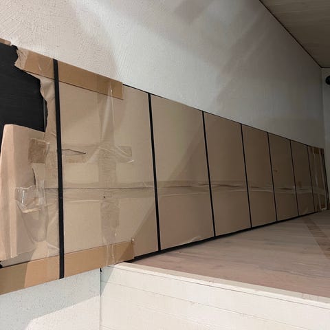 2 skivor. ca 292x65 + 71x65 cm. Felköp. Listpris 2800:- Lilla skivan ej med på fotot. https://www.bauhaus.se/kitchenboard-laminat-noce-romantica-7-8x650x3650-mm