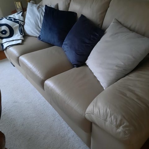 Skön och sittvänlig soffa i skinn, köpt på Mio i slutet av 00-talet. Favorit som tyvärr inte ryms efter flytt!