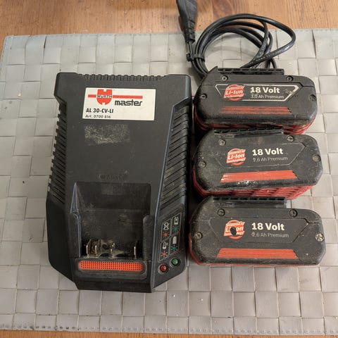 Bosch 10.8V (ingår numera i 12V serien) 1.5Ah Li-ion batteri och laddare för kompatibla verktyg. Batteriet har en kapacitet på 1,5 Ah och använder litiumjonteknik.