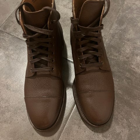 Små ytliga rispmärken i skinnet på höger sko, se bild, för övrigt inga anmärkningar. Skickas med orginalkartong.