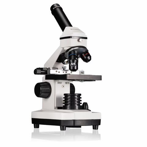 Mikroskop för barn från Bresser, 50x - 1200x. Ligger i en hopfällbar plastväska som innehåller mikroskop (med lampa), glasskivor, pincett, burkar mm. Obetydligt använt.