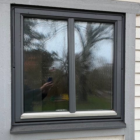 Troligen Elitfönster ifrån 2006. 3 glas isolerglas. Utsidan målades grå vid montering. Köparen monterar ner fönstret vid affär. Hälp med det går att lösa. För avhämtning under vecka 1. Går att reservera innan! Karm mått: Bredd: 100 cm - Höjd: 100 cm - minus cirka 2 cm.