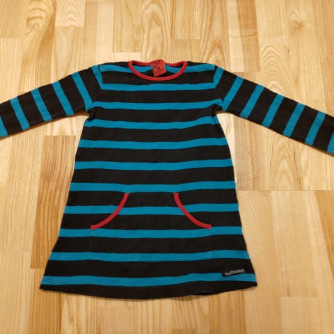 Fin svart röd randig klänning i storlek 98 från Villervalla.