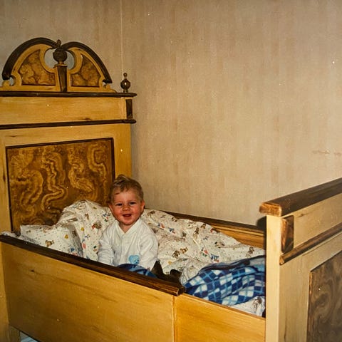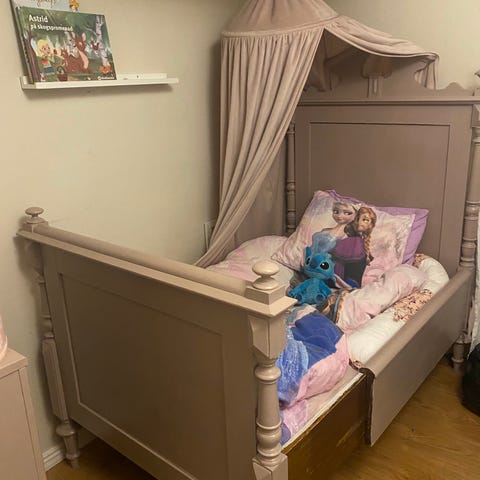 Oerhört gammal växa-säng i massivt trä, tidigt 1900-tal eller äldre. En klassisk barnsäng som kan förlängas när barnet växer. Gediget hantverk och vacker ålderspatina – ett fint samlarobjekt eller renoveringsprojekt för den som uppskattar äldre möbler.