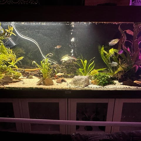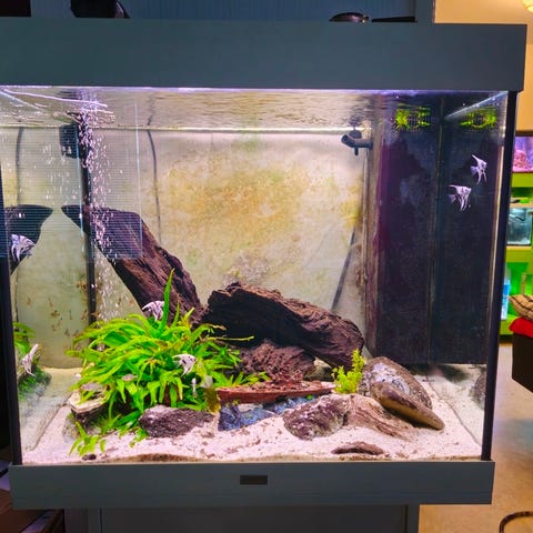 Helt ny oanvänd ledbelysning, nypris för belysningen 1800 kr. Cirkulationspump med filter. Doppvärmare, behöver testas. Foderautomat. Sand.
