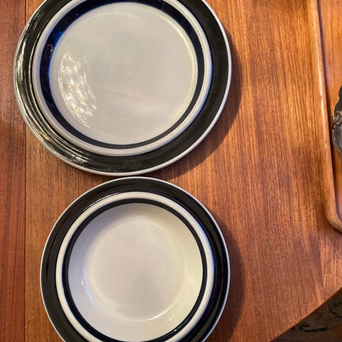 Sex stycken mattallrikar, 24 cm, i bra skick.