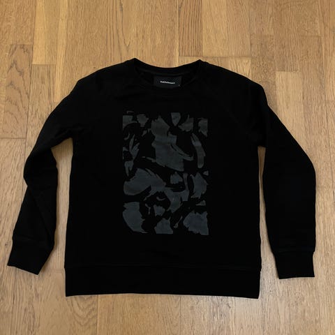 Svart långärmad tröja med texten ”PEAK” tryckt på framsidan. Rund halsringning.