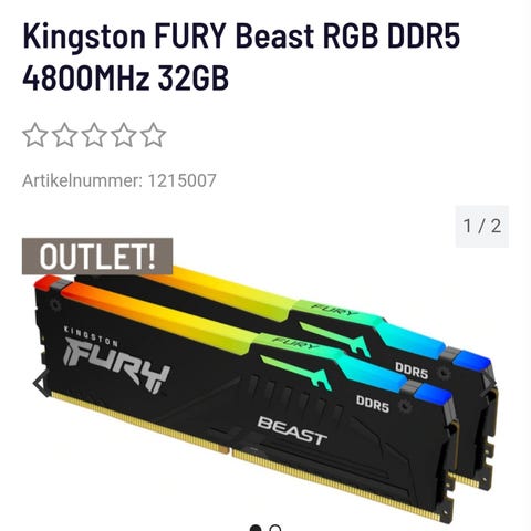 Säljes Kingston FURY Beast RGB DDR4 16GB (2×8 GB) 3200 MHz i Snygg RGB i bra skick