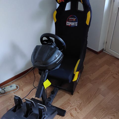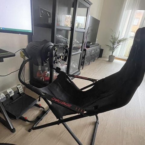 Piranha racingstol med Thrustmaster T80 RW Ferrari 488GTB ratt och pedaler.