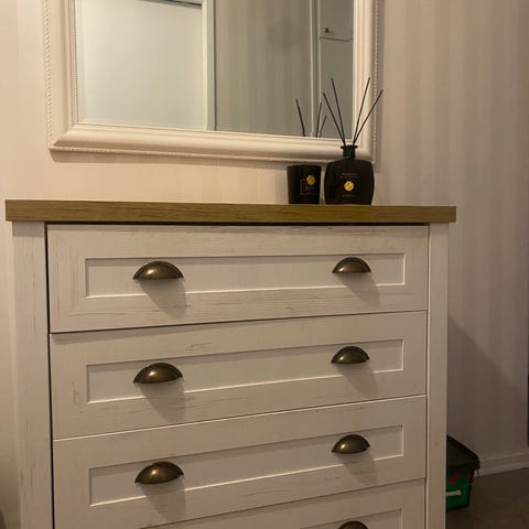 Styckepris byrå 300 kr och spegel 100 kr.