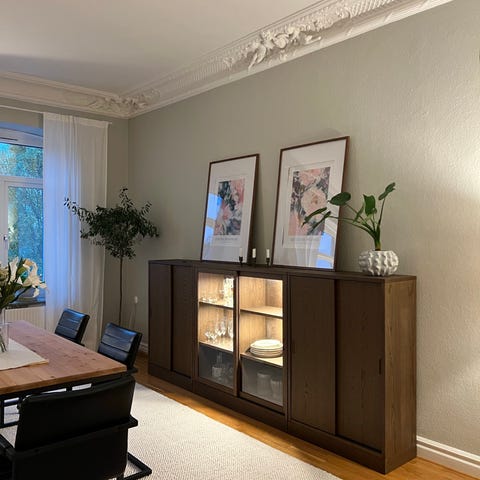 Säljes ett Tonstad skåp med skjutdörrar, brun betsad ekfaner, 82x37x120 cm. Ikea