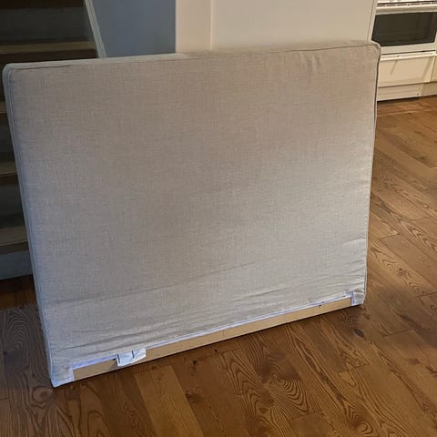 En superfin sänggavel, helt oanvänd då den har stått i gästrummet.