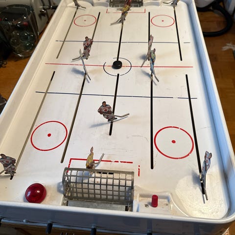 Stiga bordshockeyspel med klassisk design. Spelet är utformat för inomhusbruk och passar för flera spelare. Innehåller en spelplan med hockeytema och tillhörande spelpjäser.