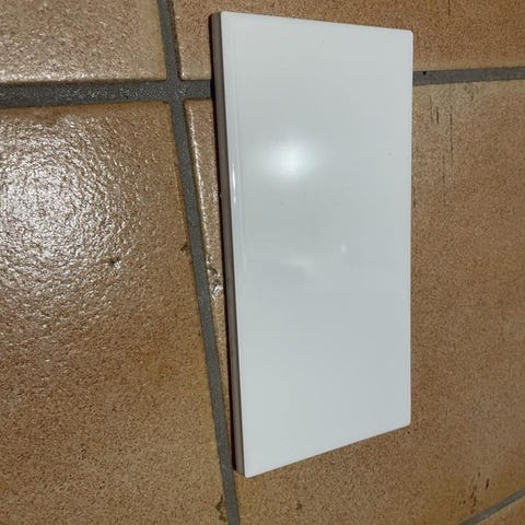 En hel låda (22 plattor) och en nästa hel låda kakel av typen "folkhemmet" (https://www.byggfabriken.se/kakel-klinker/kakel-folkhemmet/kakel-folkhemmet-15x15-cm-vit-317-130-fp) inköpt på Byggfabriken. Vitt 15×15cm tjocklek 9mm.