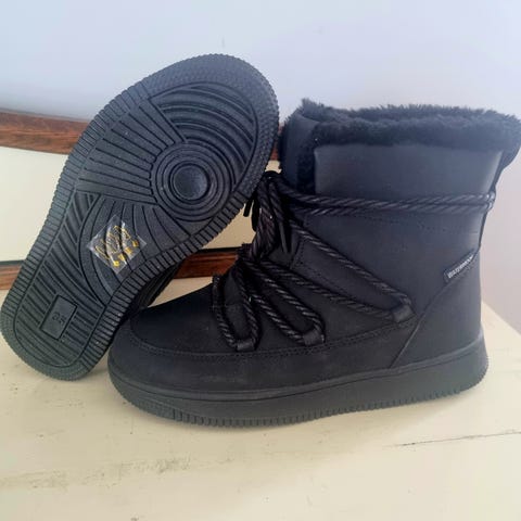 Snygga, varma, sköna vinterskor med "barfota-skor"-form, dvs som störst där foten är som störst vid stortån. Använda en vinter men fortfarande i fint skick. Storlek 35. Nypris 700 kr.