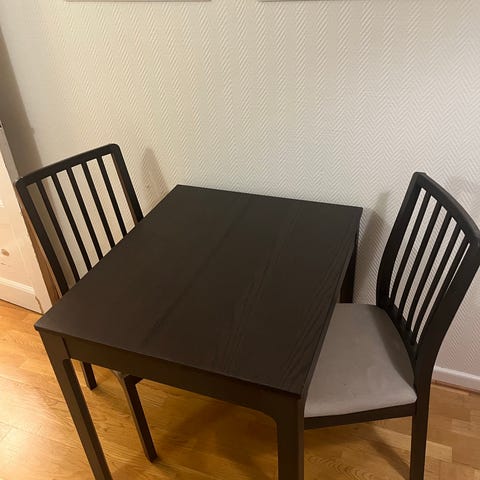 Matbord samt stolar från Ikea. I befintligt skick. Stolar och bord tillsammans för 400 kronor. Dynor ingår ej.
